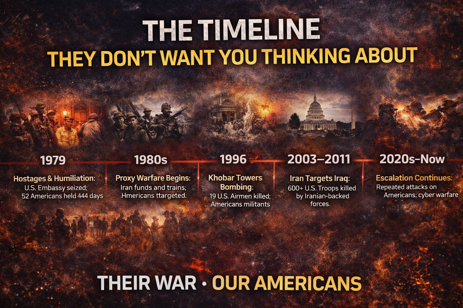 A structured timeline and constitutional analysis explaining how decades of Iranian aggression against Americans reveal that today’s tensions are not a new war, but a continuation of a long-running conflict.